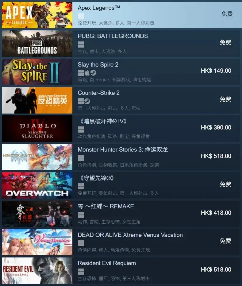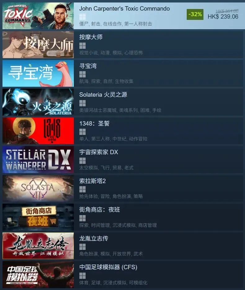 以下标签: "免费开玩", "多人", "单人", "独立", "抢先体验", "在线合作", "合作", "跨平台多人", "大型多人在线",未计入统计数据。