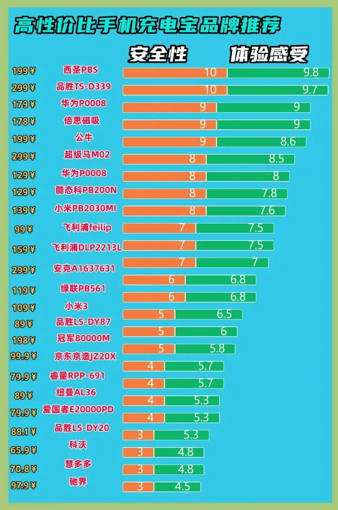 二、十款手机充电宝综合测试排行榜