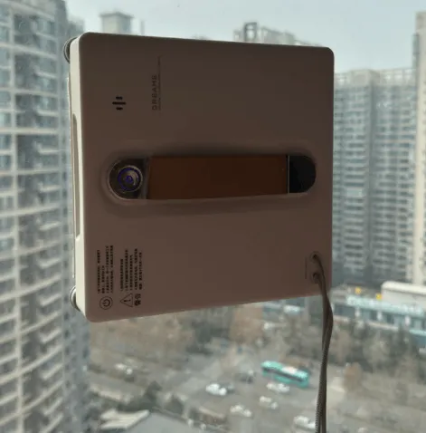 把机器放到玻璃上启动后,它会通过负压吸附牢牢贴在玻璃上,再按照路线慢慢移动清洁。一般会先喷一点水雾,再用清洁布反复擦拭,把灰尘和水渍带走,大面积窗户清理起来会轻松很多。