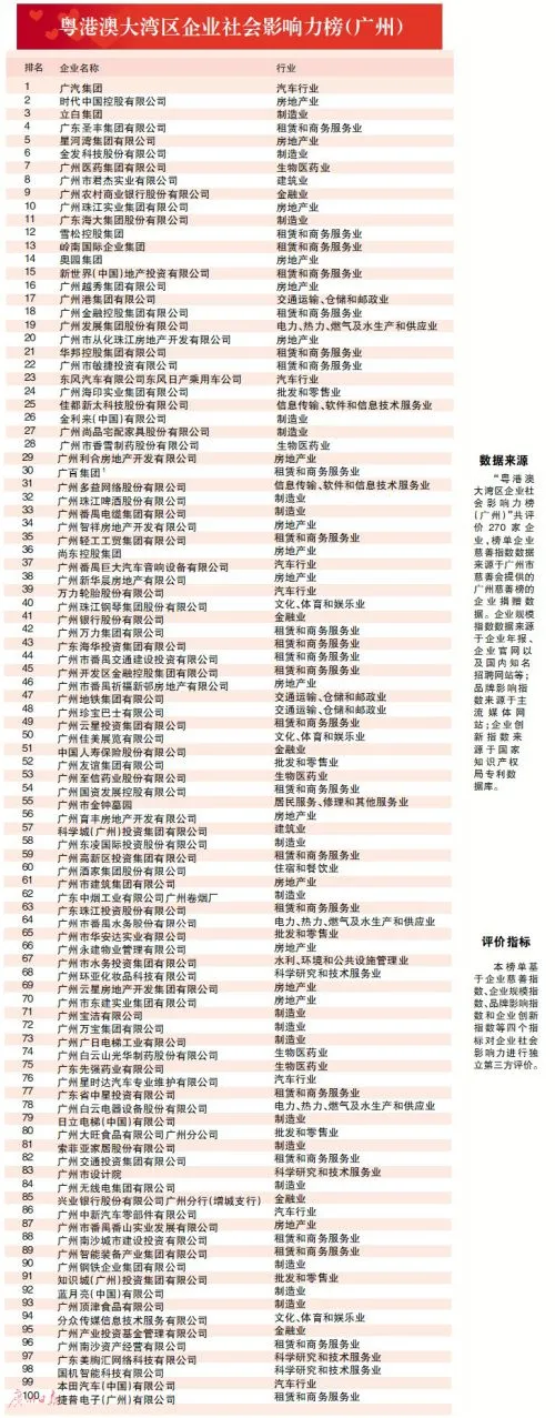 (图:粤港澳大湾区企业社会影响力榜(广州)百强榜名单)