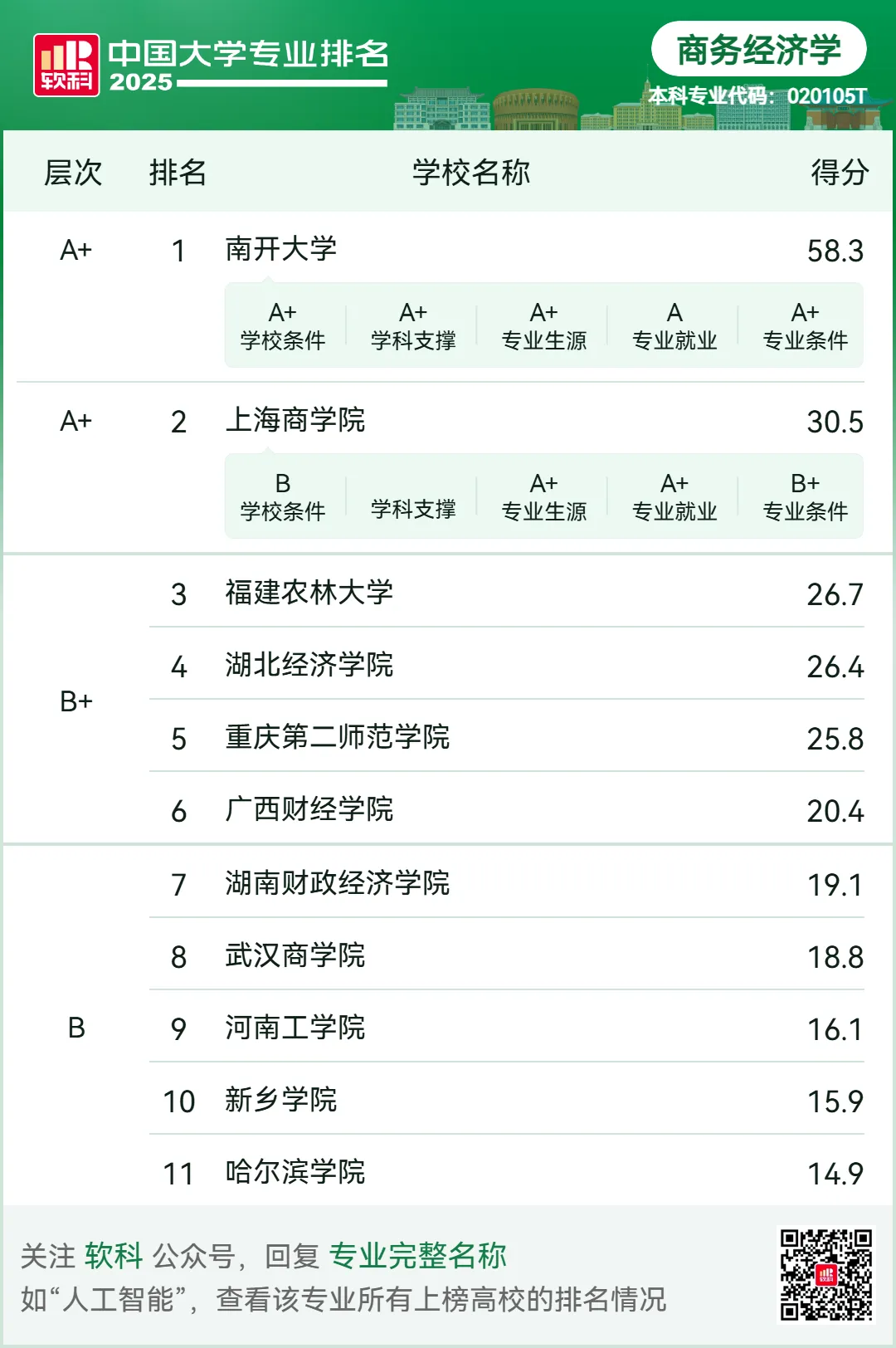 商务经济学专业排名结果如下: