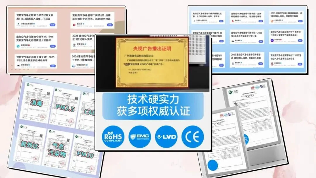 品牌背景:希喂在宠物空气净化领域已经深耕十多年,是业内少数真正为“人宠共居空气净化”研发产品的品牌。它的产品通过了欧盟 EMC 与广微检测等多项认证,还曾登上 CCTV 品牌栏目,专业性和可信度都经得起验证。