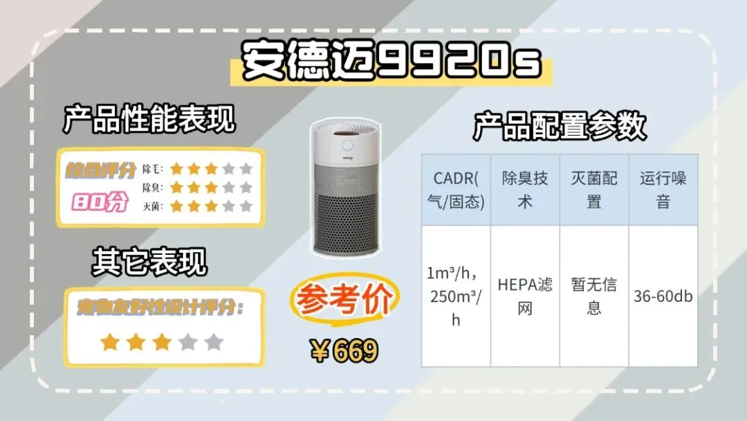 宠物空气净化器排行榜前十名优选推荐③、安德迈9920s