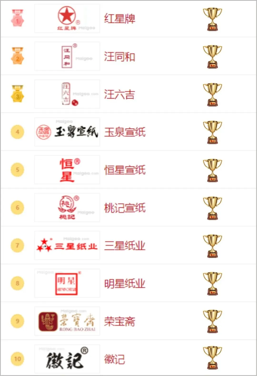 宣纸十大品牌排行榜