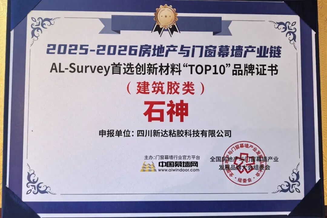 此次荣获“十大密封胶品牌”,不仅是对硅酮密封胶产品的认可,更是对公司全产品线技术实力的肯定。再次荣登“十大密封胶品牌”榜单,对于四川新达粘胶科技有限公司而言,既是行业给予的肯定,也是对未来发展的期许。
