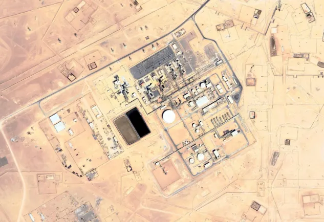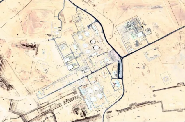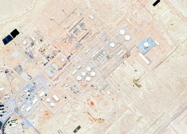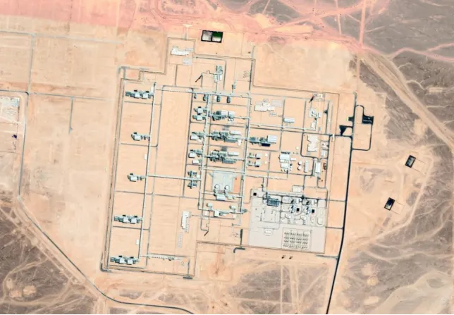 Qarn Alam油气田 (蒸汽注入): 该区块主要为裂缝性碳酸盐岩重油储层。壳牌在此应用了热采技术,即通过高温蒸汽注入大幅降低原油黏度,使其易于流动。Qarn Alam油气田,影像时间:2023年10月6日