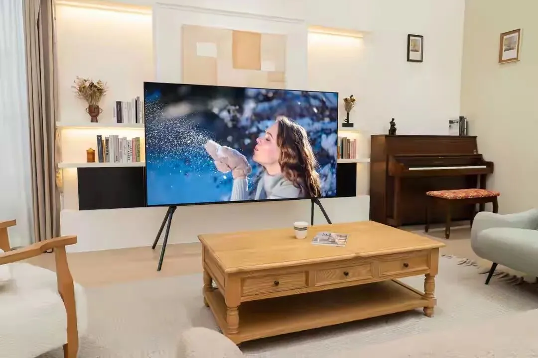 国产电视的老牌强者,技术成熟,质量稳定,主打智能交互和大屏体验,针对家庭用户做了很多贴心设计,价格覆盖广,从入门到高端都有合适的型号,口碑一直不错。整机厚度仅 39mm,采用一体化超薄设计,支持 100% 无缝贴墙安装,90° 直角画框边框设计,正面观感接近真实装饰画,完美融入简约、轻奢等各类家装风格。
