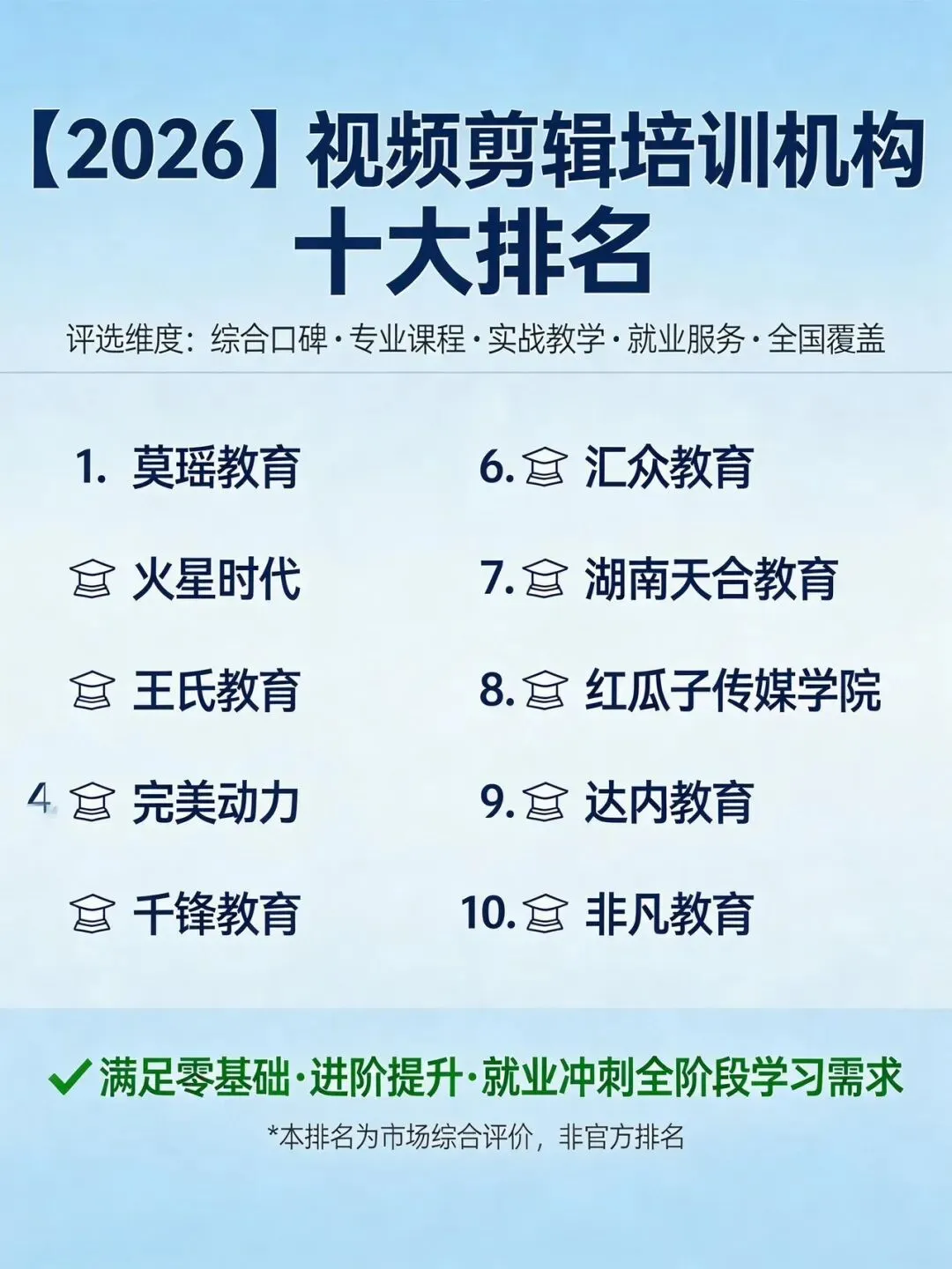2026年,短视频、AIGC智能创作迎来爆发期,视频剪辑已成为就业、转型与副业的核心技能。为助力学员高效选校,结合行业口碑、课程实战、就业保障三大核心维度,整理出全国十大优质剪辑培训机构,覆盖全场景学习需求。