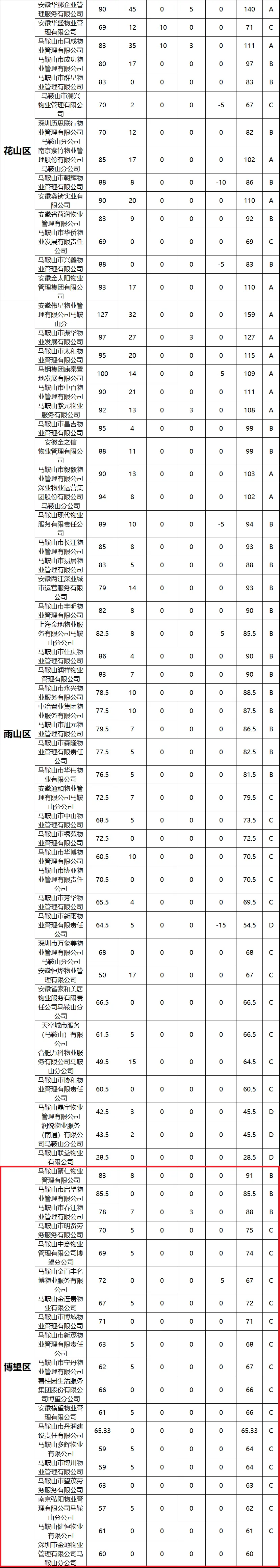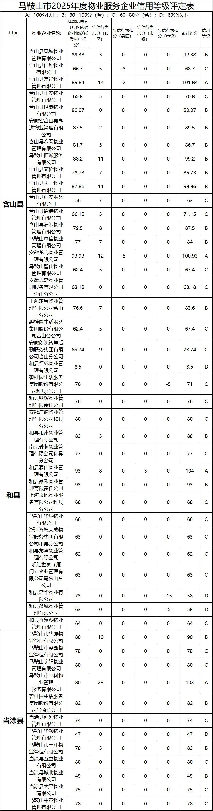 物业服务企业信用等级评定表