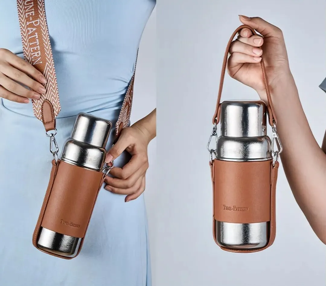 ·便捷易携:壶身重量适中,搭配可拆卸背带,手提、肩背皆可,密封性能良好,不漏水、好清洁。