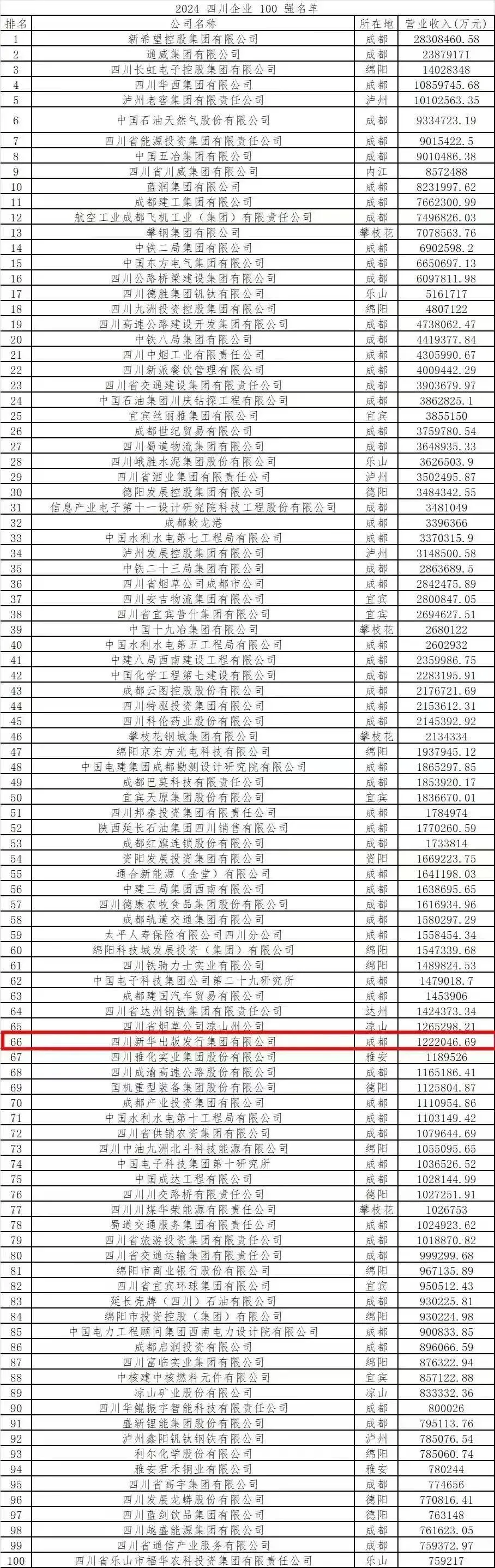 四川新华出版发行集团2023年营业收入122.20亿元、同比增长8.85%,净利润15.08亿元、同比增长13.77%,净资产167亿元、同比增长8.31%,再次上榜四川企业100强。
