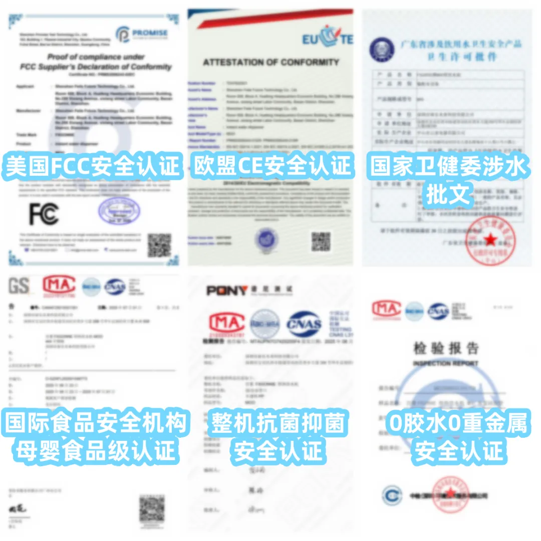 ①整机核心水接触部件全部采用母婴级安全材料,避免劣质不锈钢带来的重金属析出、水垢堆积,也避免有毒胶水、化学制剂和霉菌滋生风险。更难得的是,它通过了超五倍严苛的母婴食品级标准,重金属析出率控制在0.002%以下(常规为0.2%),有害物沉积率低于0.009%(常规为2%),挥发性有害物更是压到0.001%以下。