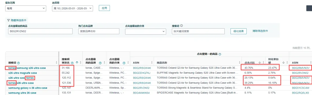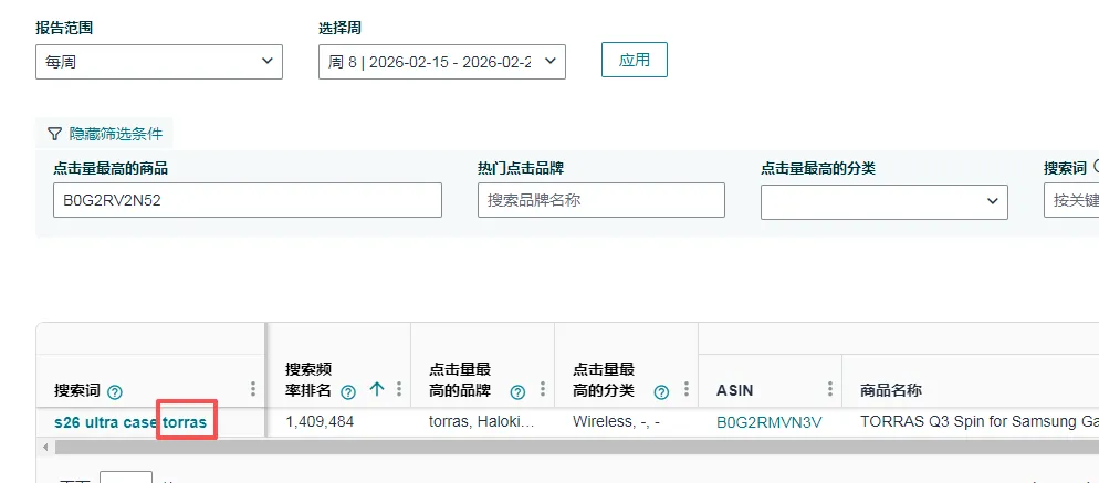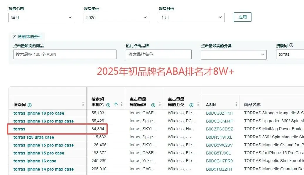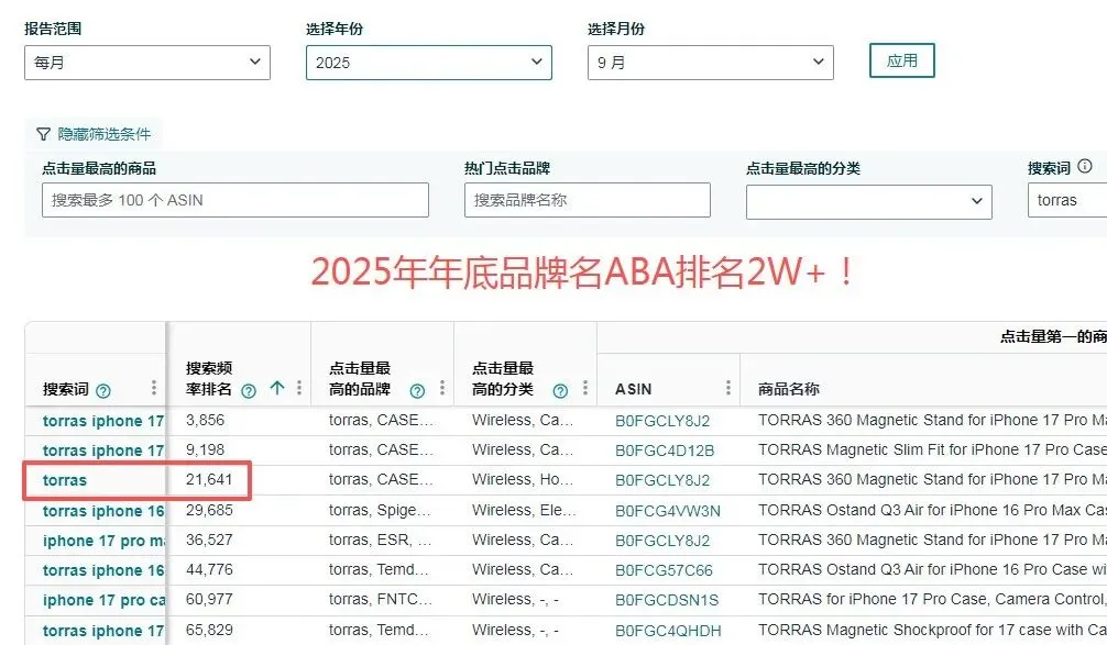 这是Torras品牌词在亚马逊后台ABA的一个搜索排名