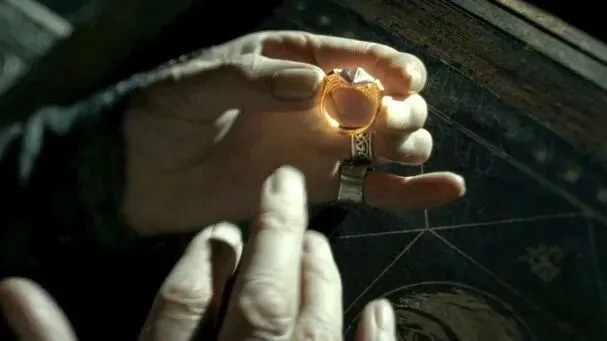 这枚戒指是伏地魔最早的魂器之一。它不但封着灵魂碎片,还镶嵌着复活石。