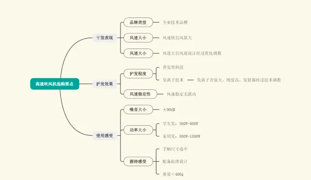 我用一张思维导图总结了高速吹风机的选购要点: