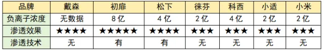 戴森、科西的负离子渗透效果表现尚可,科西的负离子含量也达到了4亿,不过实际使用中能发现,这两款产品的负离子很难深入头皮和发芯内部,只能对头发表面进行简单护理,短时间使用很难看到明显的养发改善效果,需要长期坚持才能感受到细微变化。