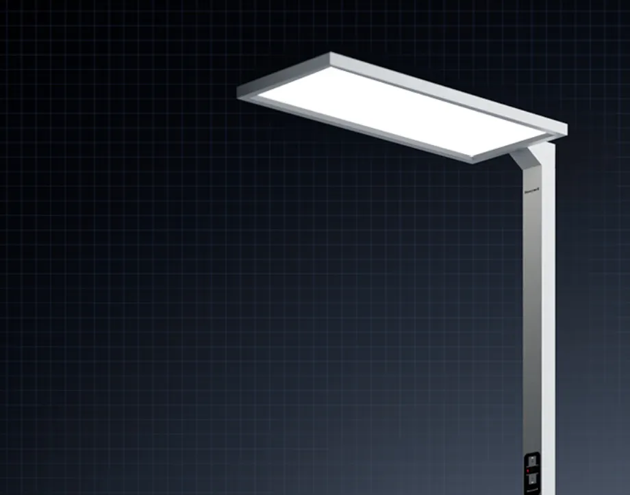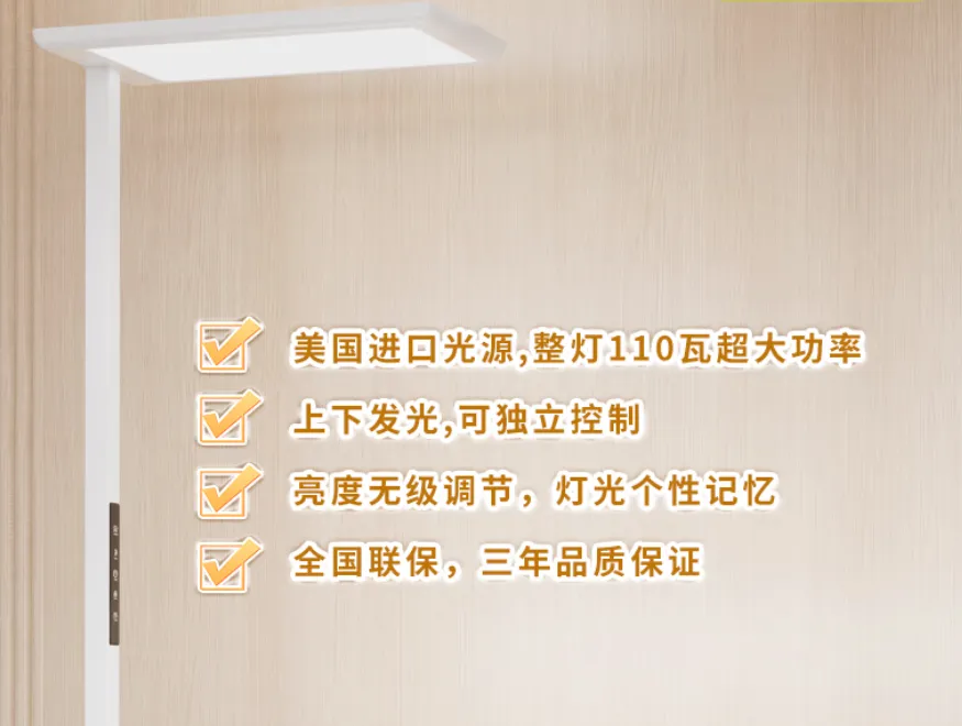 琪朗ProMax桌面平均照度最高可达1800lx,照度均匀度低至1.12,光线分布均匀无落差;显色指数Ra>98。护眼方面达到RG0蓝光豁免级,无可视频闪,眩光值UGR<10,搭配专属遮光结构,彻底规避眩光伤害。外观设计独特,它采用上下双发光面设计,上发光可120°左右旋转,能照亮20平方米空间,无室内暗角,搭配底座滚轮设计,移动便捷,满足家庭多种需求。9.GEE3120A+