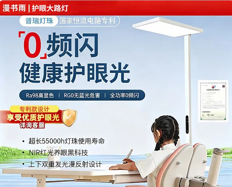 这款灯是目前国内高端护眼大路灯的标杆级产品。无论是关键参数表现还是具体的技术应用,都处于领先水准。霍韦尼尔06ProMax的桌面平均照度高达1425lx,是国AA标准的2倍多;色温恒定4000K;显色指数Ra>97;无蓝光、无频闪、无眩光,安全风险基本为零。同时这款灯采用自研高品质类太阳光光源,搭配金线封装工艺,基本杜绝光衰以及光品质下降问题。2.漫书雨星光Pro