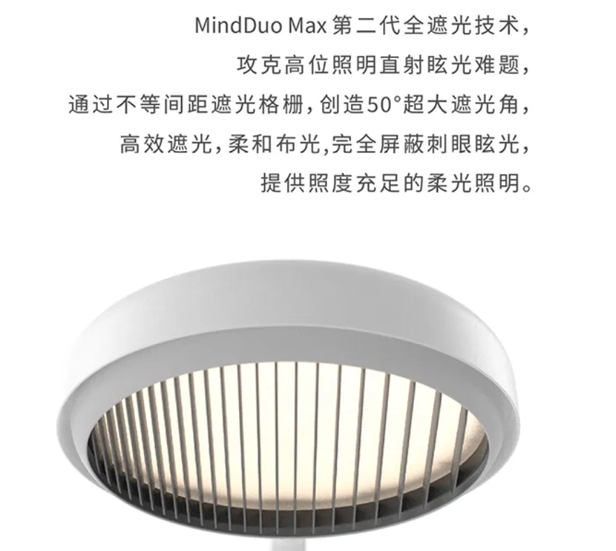 这款灯同样是国内护眼大路灯的代表级产品。参数表现与光源技术同样处于领先水准。在参数方面,柏曼骑士IPro做到桌面平均照度1245lx,是国AA标准的2倍多;色温2700K—5700K可调,具有7个调节档位,能满足不同用灯场景需求;显色指数Ra>96;蓝光RG0级安全,无频闪、无眩光。这款灯用的是首尔紫光全光谱灯珠,紫光激发纯净安全,规避传统蓝光激发方案中常见的光谱断层与有害波段叠加问题。4.麦朵尔MinddouMax