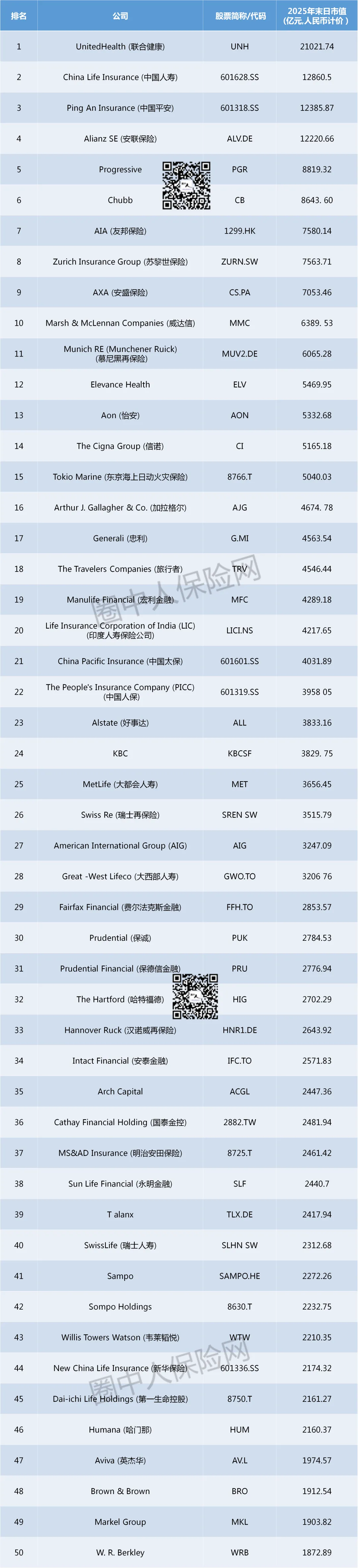 导读:2025年全球保险公司市值前十强中,中国险企独占三席。