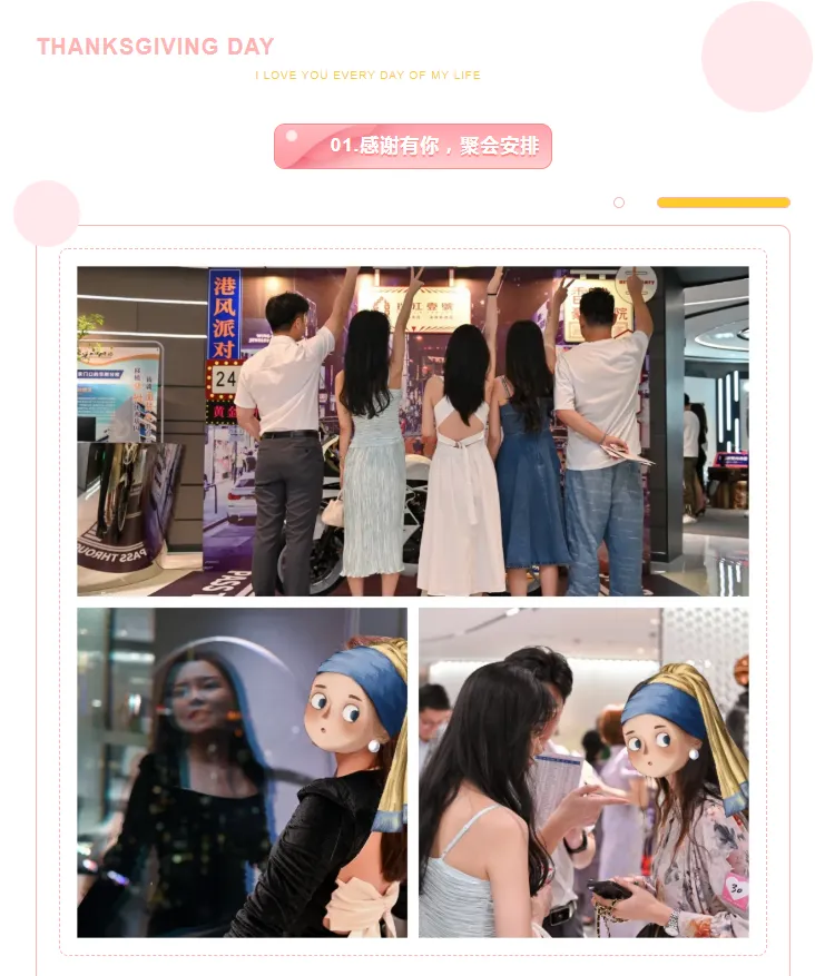 在这个轻松愉悦的下午,你抛开了所有的工作和烦恼,期待心动对象的出现,邂逅心仪的Ta,用心去了解不一样的Ta,享用各种精美下午茶,一起参与各种有趣的互动游戏,如遇见初恋般倾情,在K歌表演赛上展现你的歌喉,在交流环节中展示你的健谈和友好,争当“魅力女神”,“魅力男神”,最后你可能会收获一个温馨浪漫的告白,收获真挚爱情的起点。