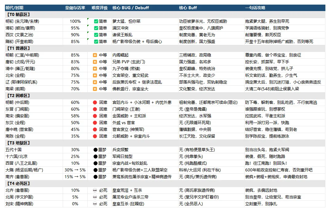 📌 附录1:🗺️ 全朝代/时期皇储难度一览表