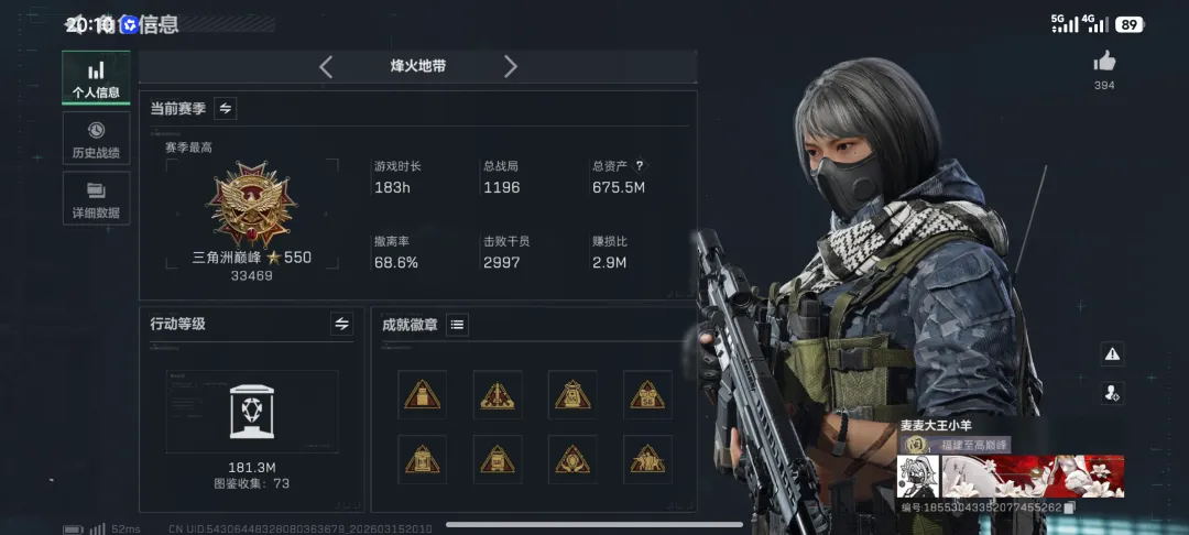 03:好巧嗷,你一开游戏就正好跟卖命的撞一块了,还有就是为什么段位比你低的,游戏时长比你多,杀人数还比你多但就是段位没你高呢?哈哈哈,也是让你小子撞上了,23%的的概率能撞上卖命买命,你把把都能随便撞但凡了解段位的朋友就会发现,游戏中的行为加分最多的就是淘汰干员,但别的玩家去打的都是绝密航天监狱那种,谁能保证把把清图把把都杀人?但是夜坝不同,卡点进的并且都大坝门口的都是卖命买命的,全是烂崽只要舍得起个好装备五套金蛋什么的,鼠鼠是根本还不来一点儿手。谁家好人冲国服段位榜来夜坝猛攻说是,这要不是惯犯摸摸惩罚摸摸明天吃肯德基!别人351小时,1375局游戏,4184个击杀,三角洲巅峰445星麦麦大王你183小时,1196场,2997个击杀,三角洲巅峰550星合着你™一把游戏不算排队9分钟就能搞完是吧,还能保底杀3个人,那你真牛皮。说实话刚才摸摸仔细看了看排行榜,发现有相当多的一部分人数据不正常,明显的游戏时长跟游戏场数撤离率有点对不上。但是你麦麦大王小羊可是被人抓现行了嗷,关键是背刺就背刺了,你还发抖音炫耀是怎么个事,果然人最缺什么越是要炫耀什么。现在联动时间也过了,后台也有小伙伴们跟我反馈下次抽奖可以抽2个动作,摸摸看了一下也是可以的。同时欢迎大伙儿载后台私信摸摸嗷,摸摸一定有问必答哈。作者:摸摸,愿所遇皆热爱,以欢喜之心,慢度不可知会的际遇。