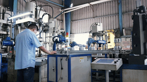 要满足市场需求,及时交付订单,离不开先进生产设备的有力支撑。这里是万事泰自动化铝合金餐厨具生产线,在一组组机械臂有条不紊地传递下,五分钟内便能完成一个锅底的抛光抛边工作,比过去人工快近三倍时间,品质也更有保障。