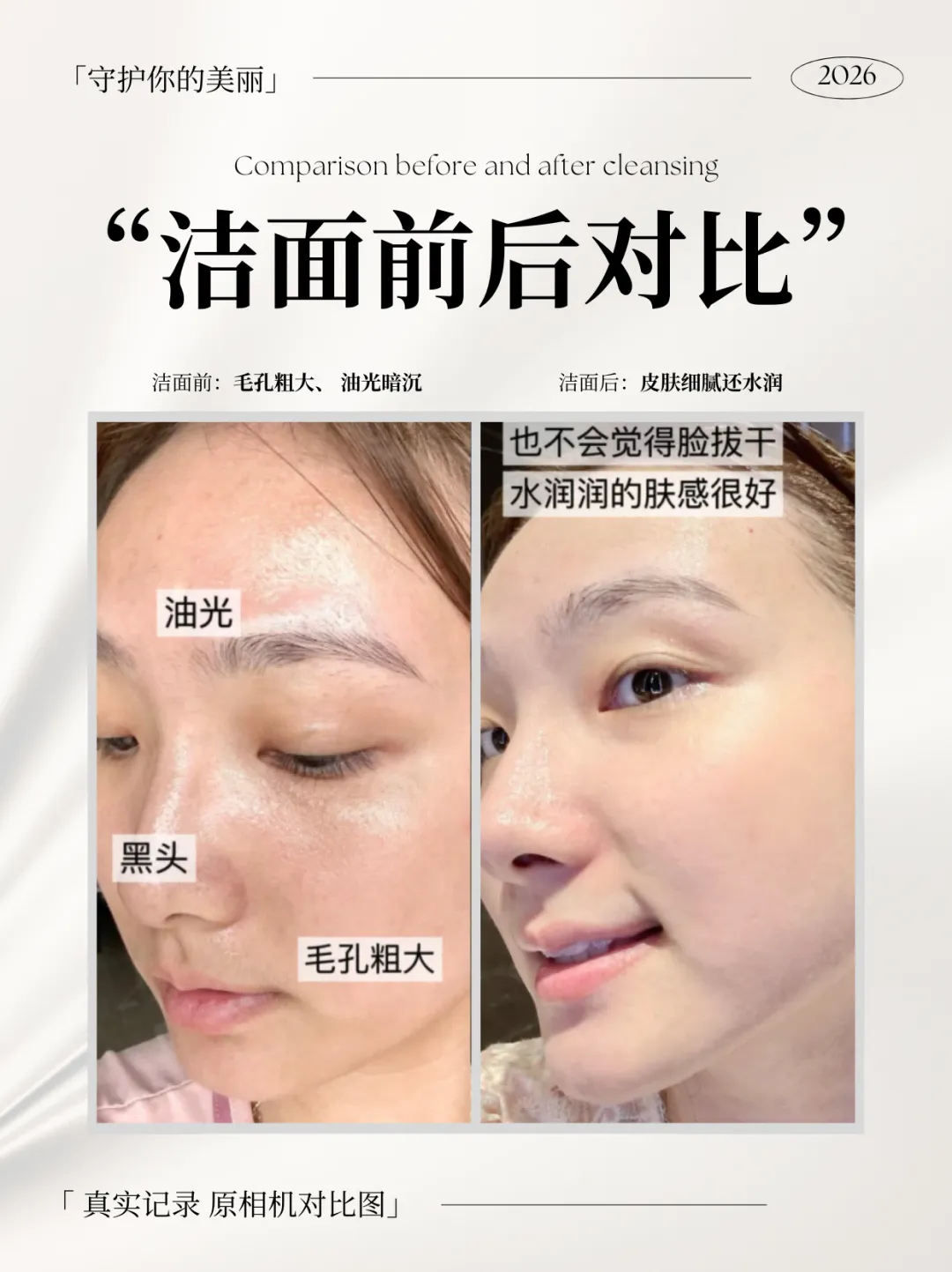 洗完一点都不紧绷,温和又温柔,仅仅一次,就真的有惊艳到我,洗的如此深入透彻完了还不拔干,有种深度清洁毛孔的感觉,冲洗完皮肤干干净净仿佛会呼吸。