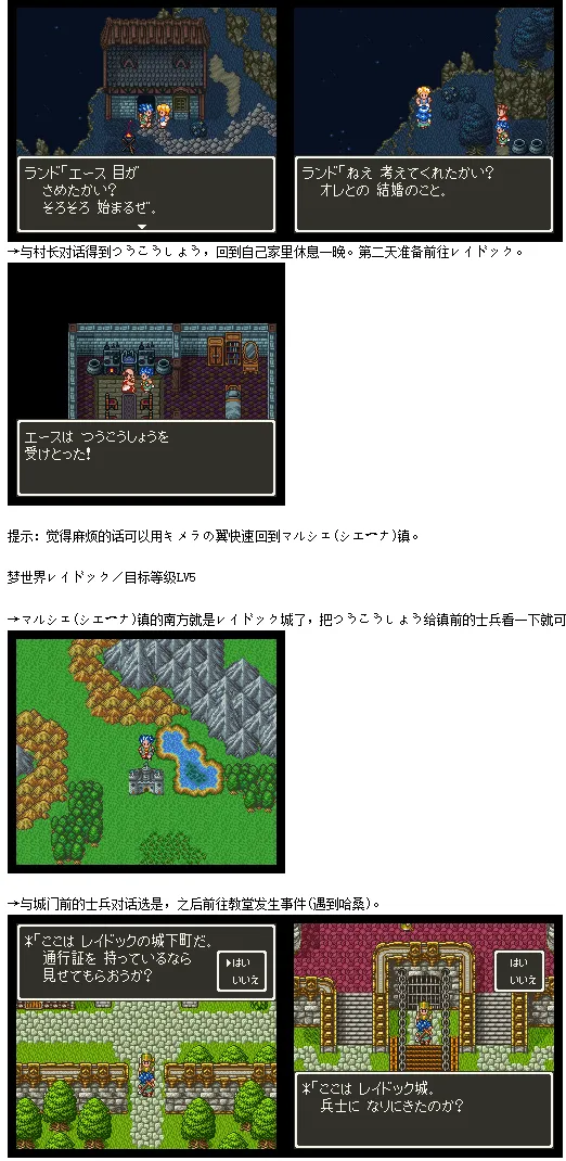 →返回レイドック城与城门前的士兵对话选否,随后来到中央庭院与老爷爷对话,随后ソルディ出现发生事件。