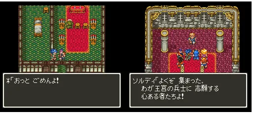 →在4F的三个门中,从左往右第一个是前进的正确路线,第三个进入后来到5F在抽屉里发现一枚ちいさなメダル(小徽章),与士兵对话得到一个きんのゆびわ(金戒指)。