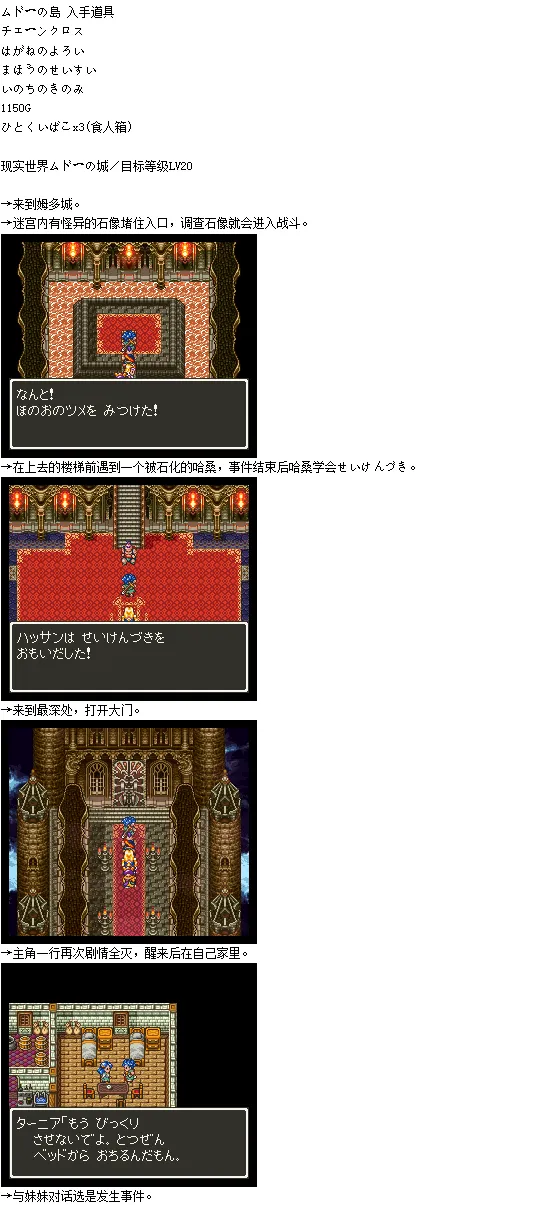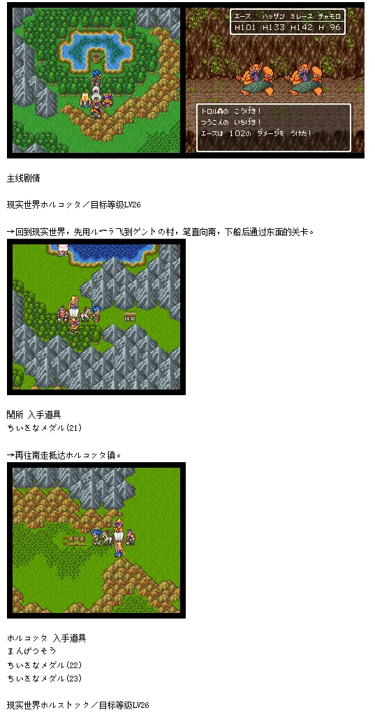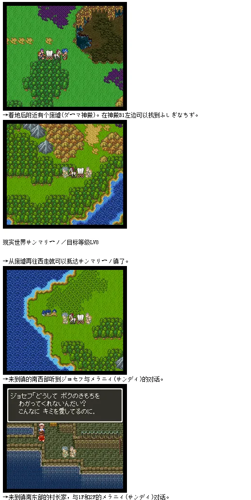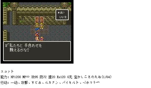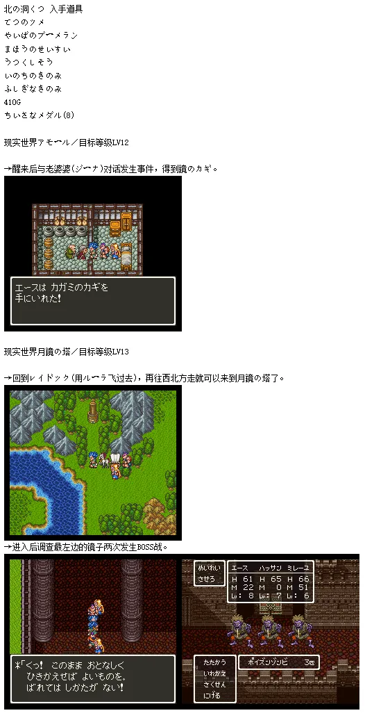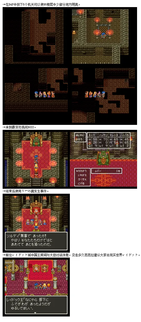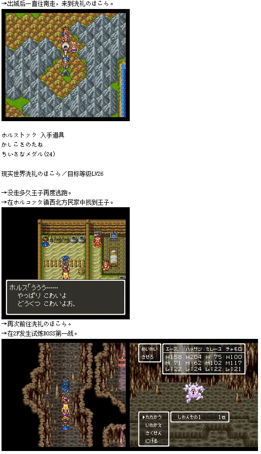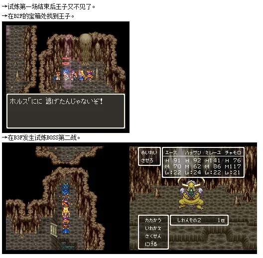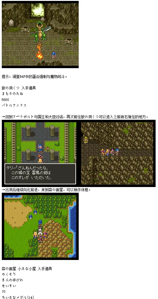 如果在这里已经LV7的话这一战很轻松,对BOSS使用ルカニ(降低防御力)然后猛攻即可,要注意身上带几片药草。如果低等级的话要注意BOSS的ちからため这招,下一回防御可避免受到大伤害。