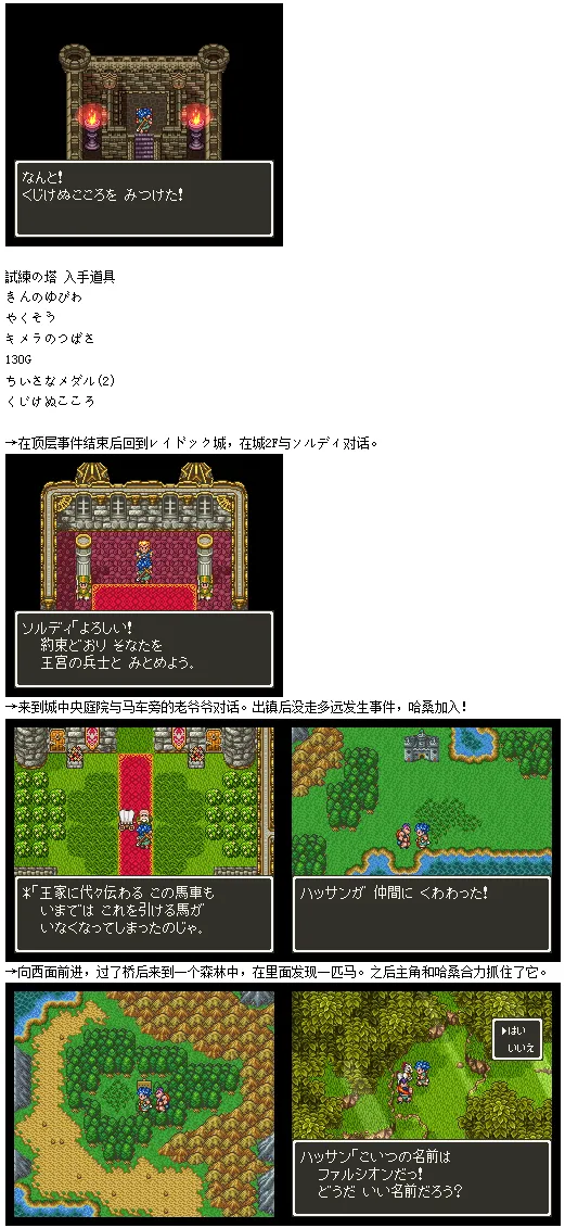 提示:如果让哈桑先一步的话(例如中途再出去加血或者存档哈桑就会比主角快),到达顶层与士兵长对话就不会进行BOSS战了,也得不到くじけぬこころ了。