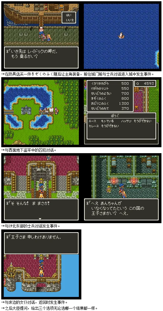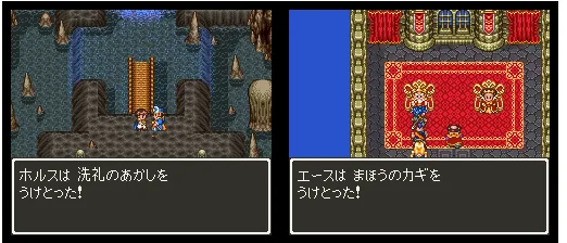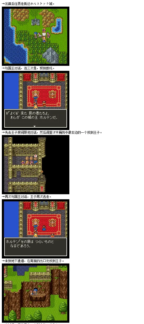 →来到最深处发生事件后与王子对话回到ホルストック城,发生事件举行宴会,与国王对话获得まほうのカギ。