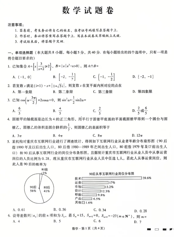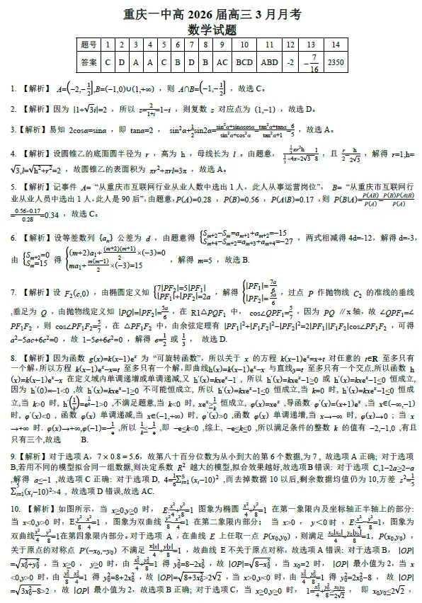 >【重庆卷】百强校丨重庆市第一中学2026届高三下学期3月月考