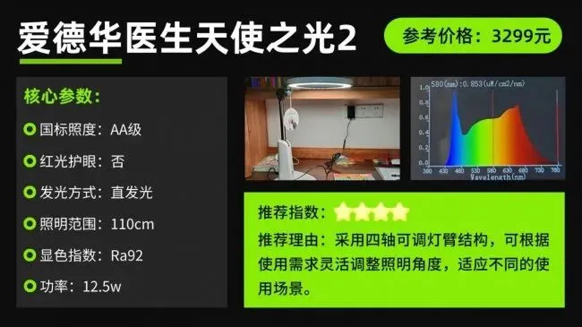 护眼台灯品牌排行前十名有哪些?爱德华医生天使之光2采用25厘米的环形灯头,相比传统圆形灯头能提供更开阔的照明视野,有效减少书写时的遮挡阴影。内置定时、学习、创作和休闲四种情景模式,通过按键就能快速切换,日常使用很方便。不过,由于采用的是直发光方式,让光线质感显得偏硬,在光滑纸面上容易出现反光。Ra92的显色指数虽然够用,但看彩色内容时会感觉色彩不够鲜活。