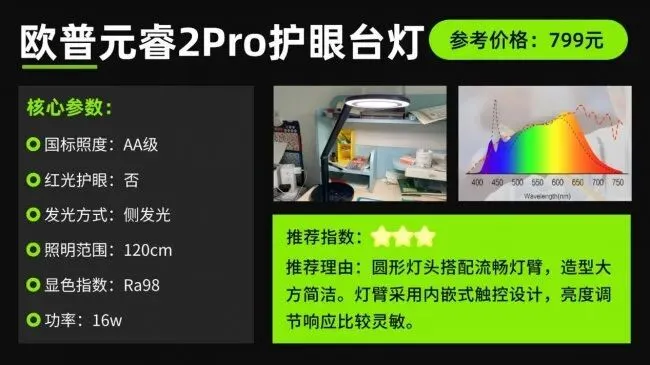 护眼台灯品牌排行前十名有哪些?欧普元睿2Pro护眼台灯的外观采用了塑料和铝合金的组合,底座背面有一块钢化玻璃,主要是为了增加一点重量让台灯更稳。它的显色指数有Ra98,这意味着它显示物体颜色的能力比较强,看彩色的东西会比较鲜艳真实。色温可以在3100K到5100K之间无级调节,从暖光到冷光都能覆盖。操作是它的一个重点,支持单手指滑动调亮度、双手指滑动调色温,对于孩子来说可能比较有趣,也配备了智能调光、定时休息这类常见功能。