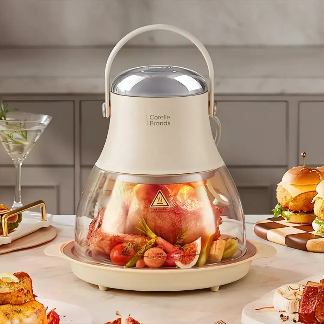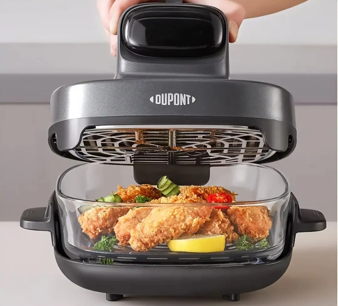 内胆采用高硼硅玻璃,告别传统不粘涂层用久了会脱落、吃进肚子里的焦虑。而且玻璃材质通透,食物从生到熟全程可见,看着鸡翅慢慢变金黄,非常治愈。