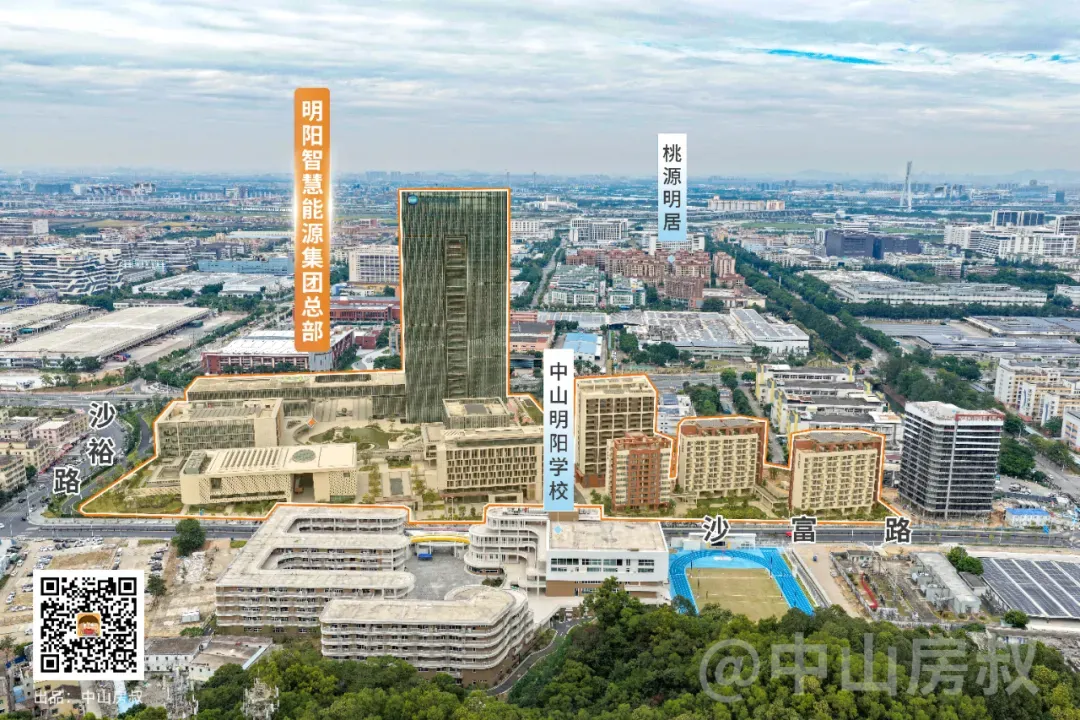 该项目是中山市首宗混合产业用地项目,于2022年2月动工。总建筑面积达8.2万平方米,包含一栋31层的主塔楼及多栋配套研发车间。建成后,这里将成为明阳集团的全球运营与创新研发总部,承载风电、光伏、海工装备、海水制氢等产业集群的研发与管理职能。