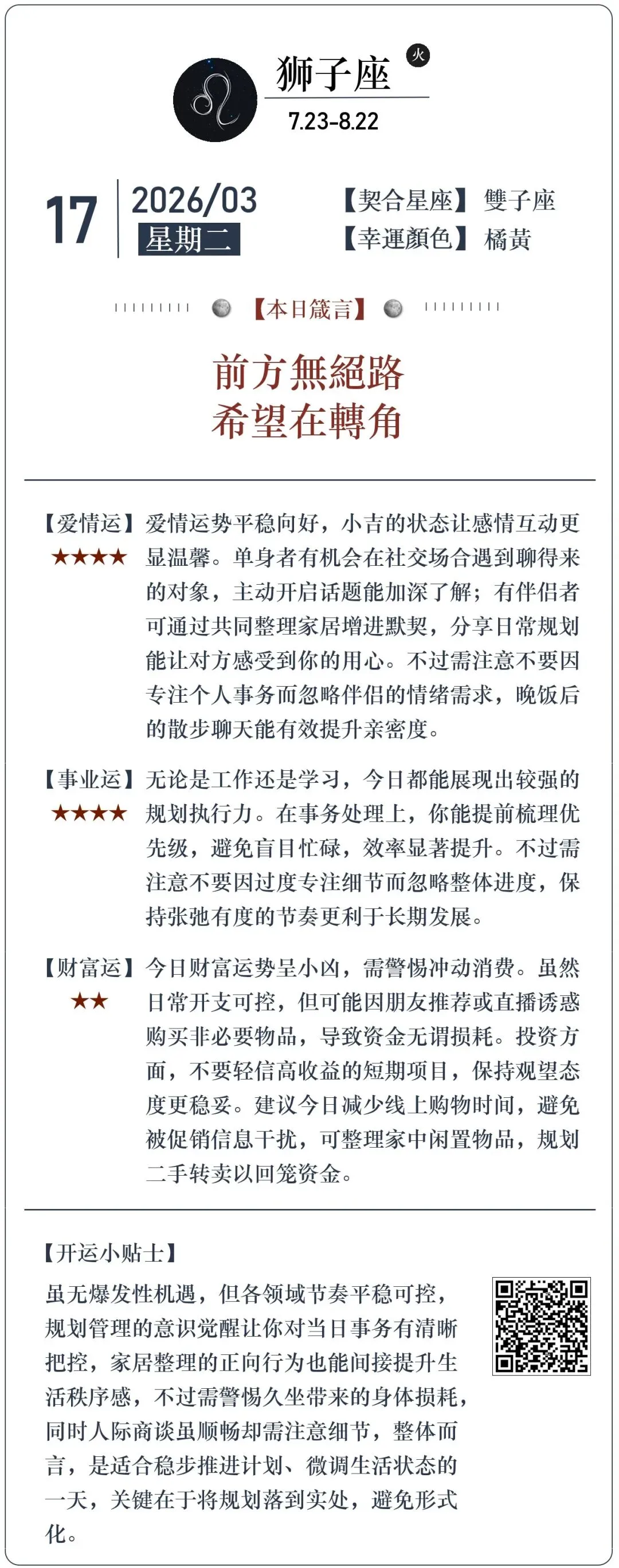 你的明日运势