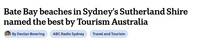 悉尼南部的贝特湾海滩(Bate Bay Beaches)以其独特魅力和自然风光,成功夺得第一名。
