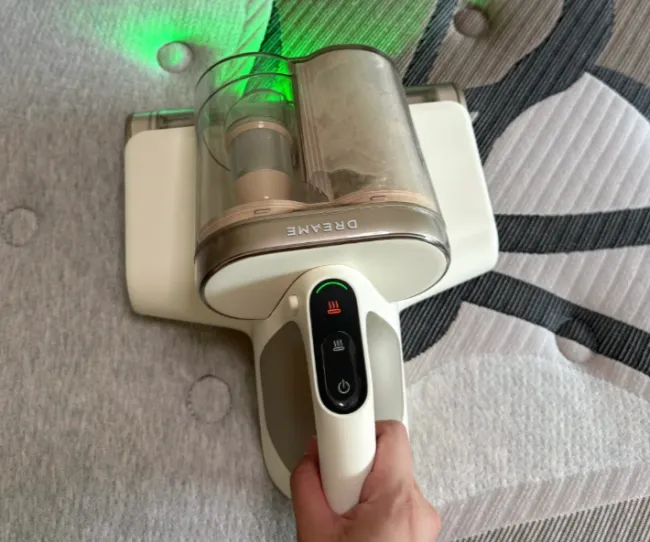 测评表现:© 清洁力很能打。五分区重锤拍杆 + 加厚齿状胶条,拍打效率提升 80%,能震出床垫深处螨虫;18000Pa 吸力,脏污一吸而空。无汞 UV-C 杀菌 + 三维立体热风,3 分钟除湿堪比暴晒 10 小时,南方潮湿地区特别友好。