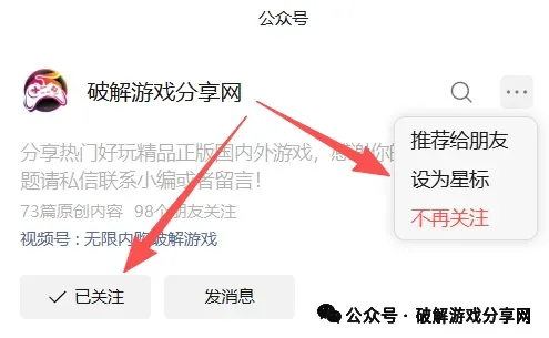 记得点击公众号的右上角三个点