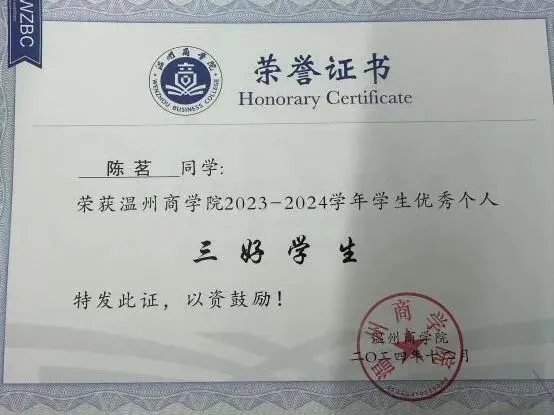 高考结束时,陈茗对未来并没有特别清晰的规划。选择温州商学院是因为她希望在大学阶段接触更国际化的教育环境。刚入学时,她并不觉得自己是那种“特别优秀的学生”。相反,她形容那时的自己:“好像没有什么特别突出的地方。”