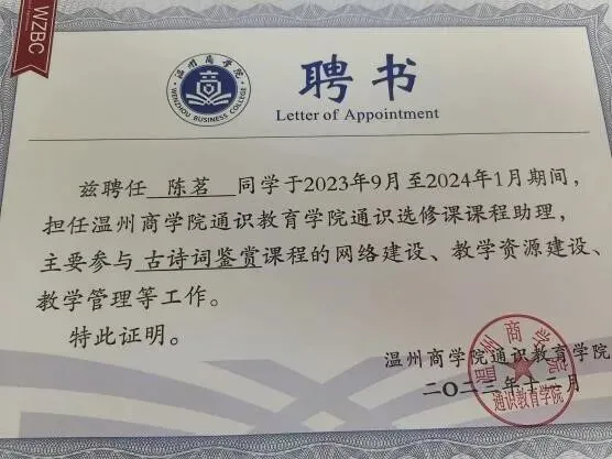 陈茗常说,进入温商之前,她是一个不太自信的人。但三年的大学生活,让她逐渐看见了自己的潜力。当一封封海外院校的录取通知书陆续出现在邮箱里时,她才意识到,原来自己已经走了很远。