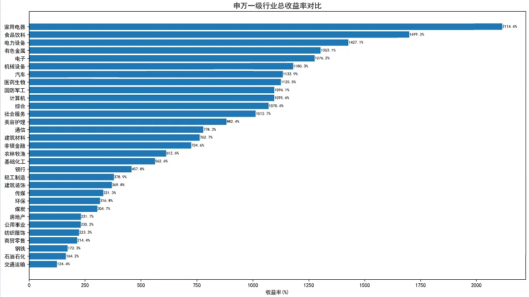 家用电器:2114.4%(全市场第一)