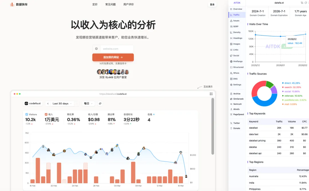 这个站创始人高频在 X/LinkedIn/YouTube 做内容:技术 + 运营复盘,比较注重投广告。根据 twitter 站长已经全职搞这个三年了。