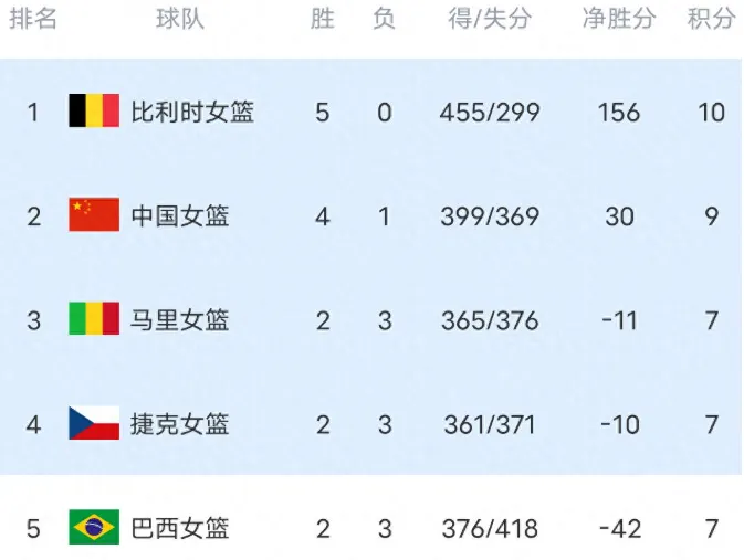 在女篮世预赛武汉赛区的积分榜上,比利时女篮以5战全胜的战绩傲视群雄,但中国女篮的晋级之路堪称"教科书级逆袭"。当3月12日中国队65-80负于比利时后,舆论普遍认为"欧洲冠军将轻松锁定小组头名"。然而,篮球场上的剧情永远比剧本更精彩——巴西女篮在3月16日以76-73逆转马里,意外为中国队铺就晋级红毯。