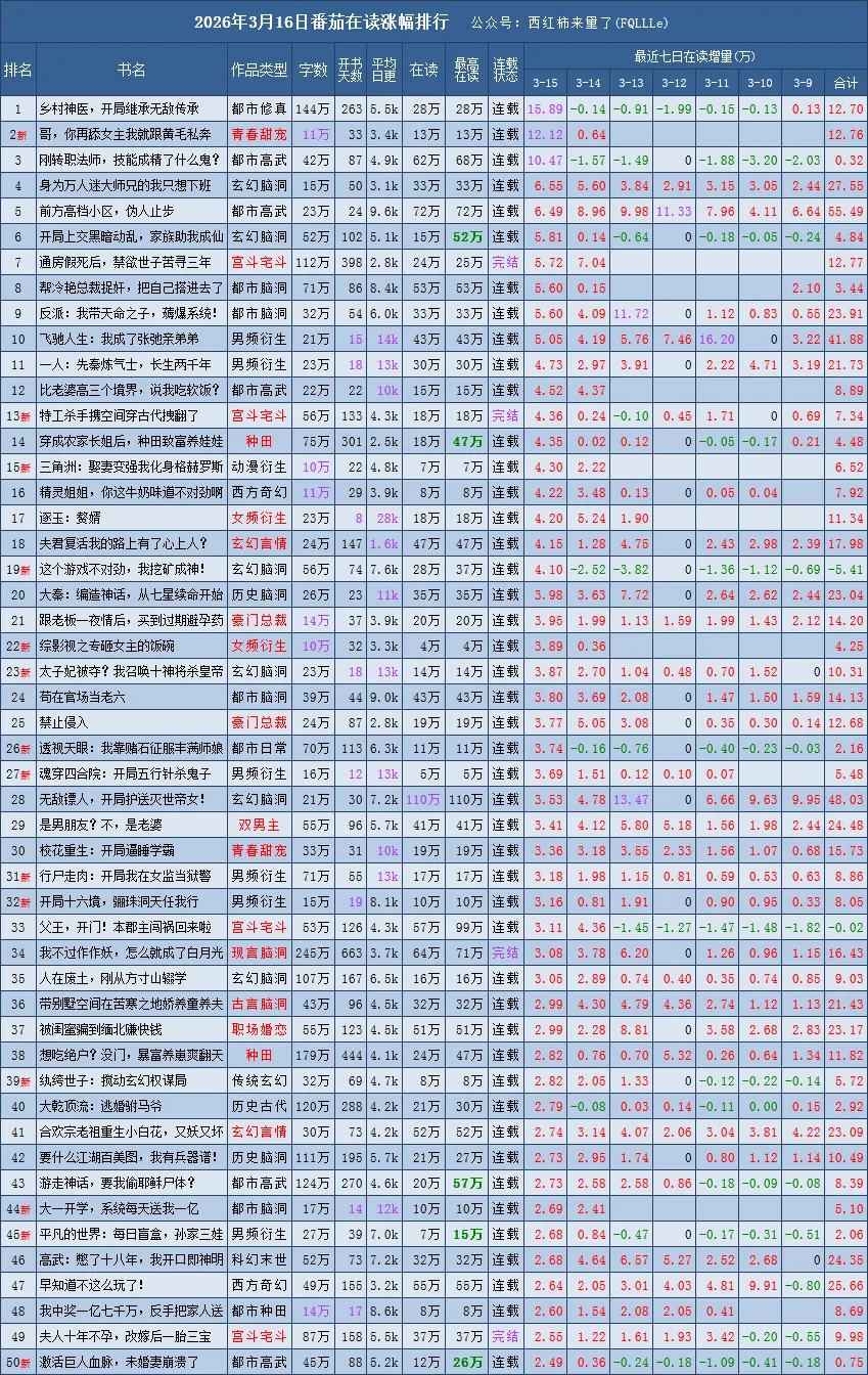 是根据番茄原创新书榜、阅读榜的在读数据