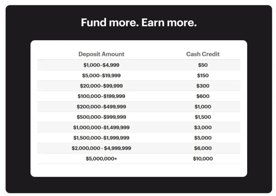 - $1500 奖励:2026 年 3 月 31 日之前,存入 $150k-$249.99k,并保持至 2026 年 6 月 30 日